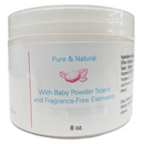 Baby powder whipped shea butter is light yet luxuriously creamy, and quickly penetrates the skin to condition, soften, and smooth while protecting against dryness. It is decadently thick and fragranced with a delicate baby powder scent, giving up to 24 hours of hydration.