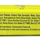 Ingredients: Sodium Palmate, Sodium Palm Kernelate, Water, Glycerin, Fragrance, Sodium Gluconate, Palm Acid, Butyrospermum Parkii (Shea) Butter, Sodium Chloride, Palm Kernel Acid, Titanium Dioxide (CI 77891), Cocos Nucifera (Coconut) Oil, Ext. Yellow 7 (CI 10316), Commiphora Myrrha Resin Extract, Honey Extract, Iron Oxides (CI 77499), Red 4 (CI 14700).