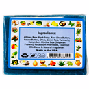 Ingredients: Water, African Raw Black Soap, Raw Shea Butter, Cocoa Butter, Rosehip Oil, Carrot Seed Oil, Olive Oil, Green Tea Oil, Turmeric Oil, Glycine Soja (Soybean Protein), Sodium Hydroxide, Fragrance (Essential oil blend).